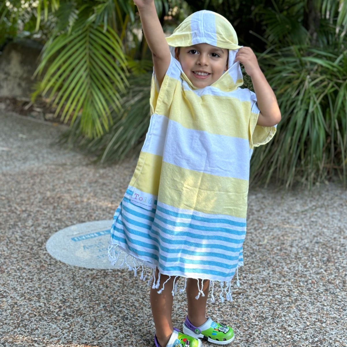 We call it Ponchitos back in Colombia. Crafted to keep your little ones cozy and dry after their aquatic adventures.