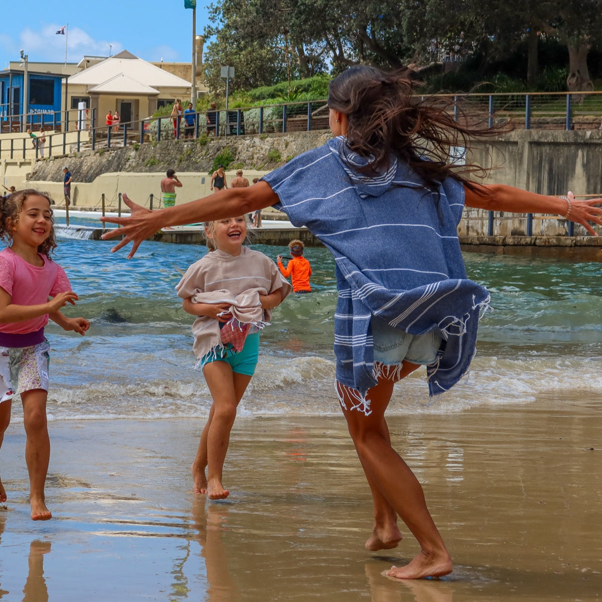 The Tolu Australia Navy Stripes Adult Hooded Beach Towel is the perfect essential for your swim bag, beach days, and post-surf comfort. Designed for both style and practicality, this hooded towel for adults also works as a changing poncho, giving you privacy, warmth, and quick-dry convenience wherever your adventures take you.