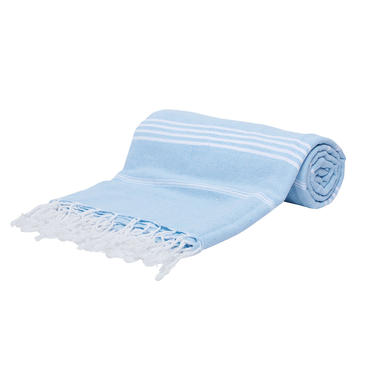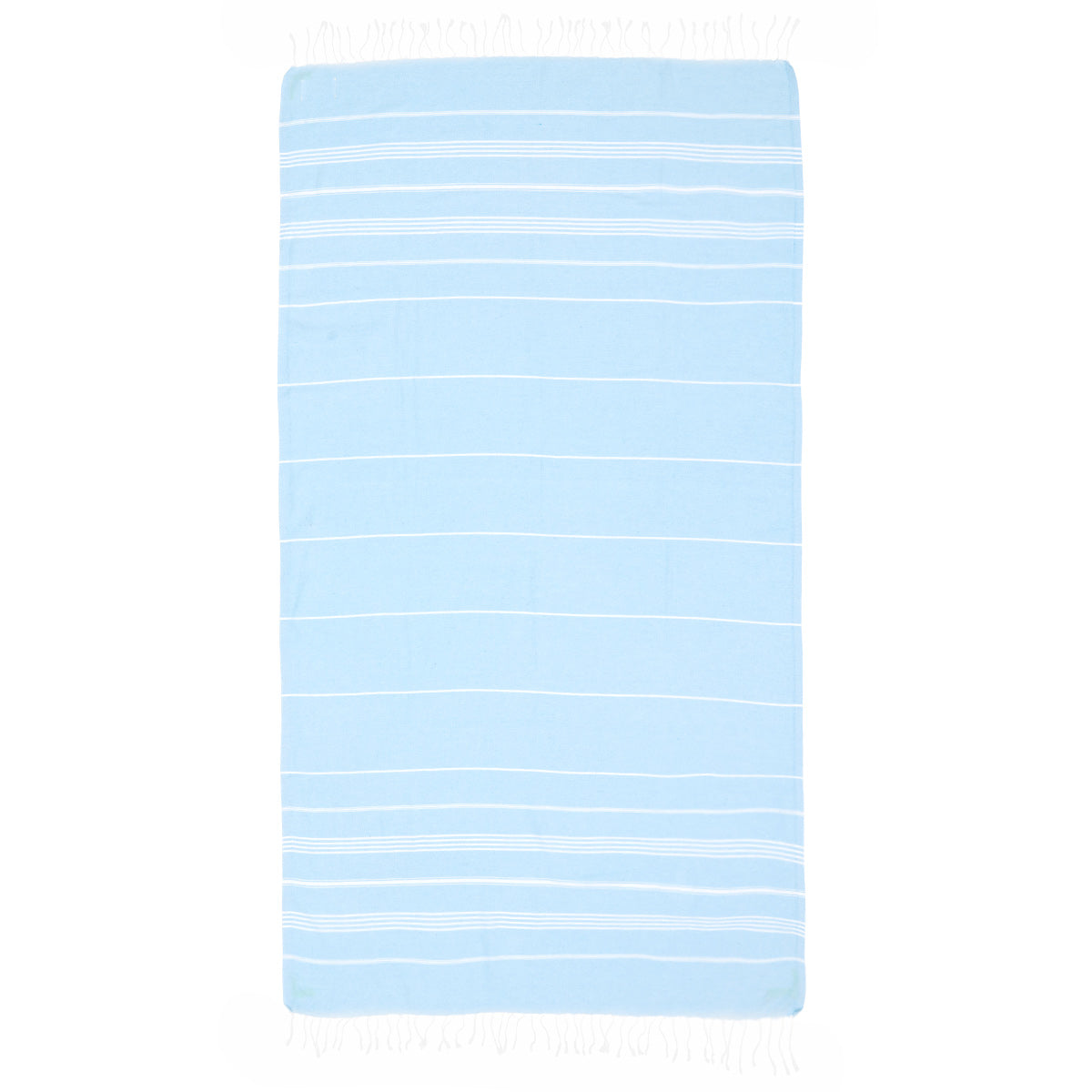 This Baby Blue Thin Turkish Towel dries fast and the sand won't stick to it; in addition, it is the perfect towel to feel stylish at your favorite waterside destination. Also, the more you use it, the better absorption it will have.