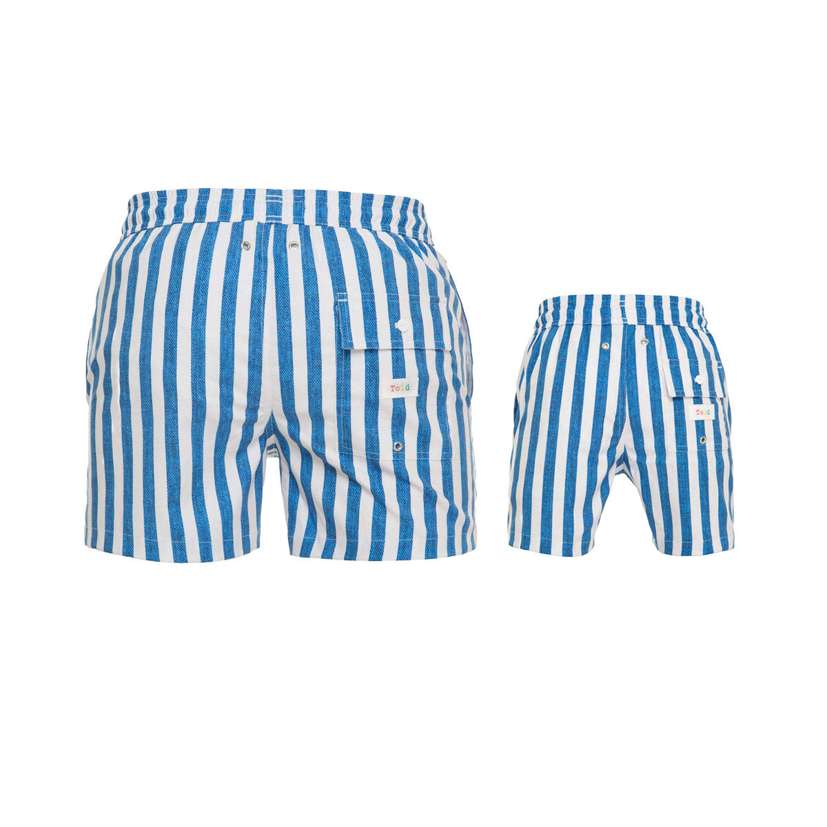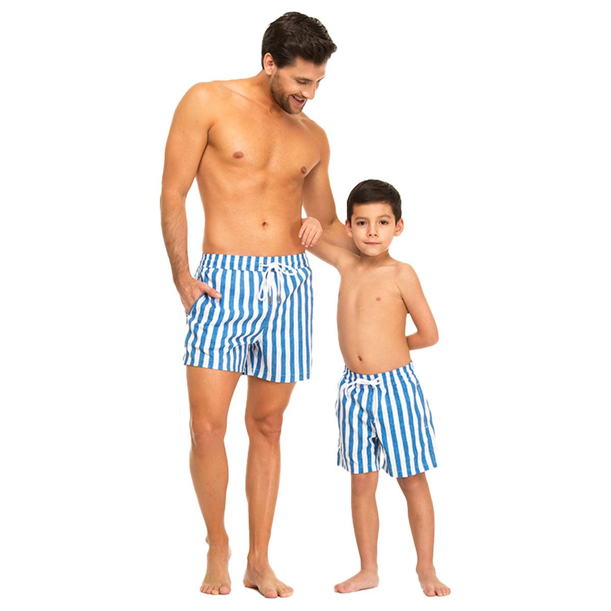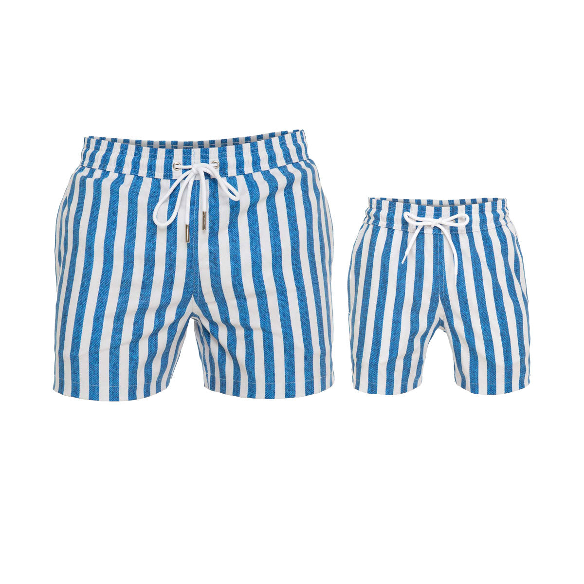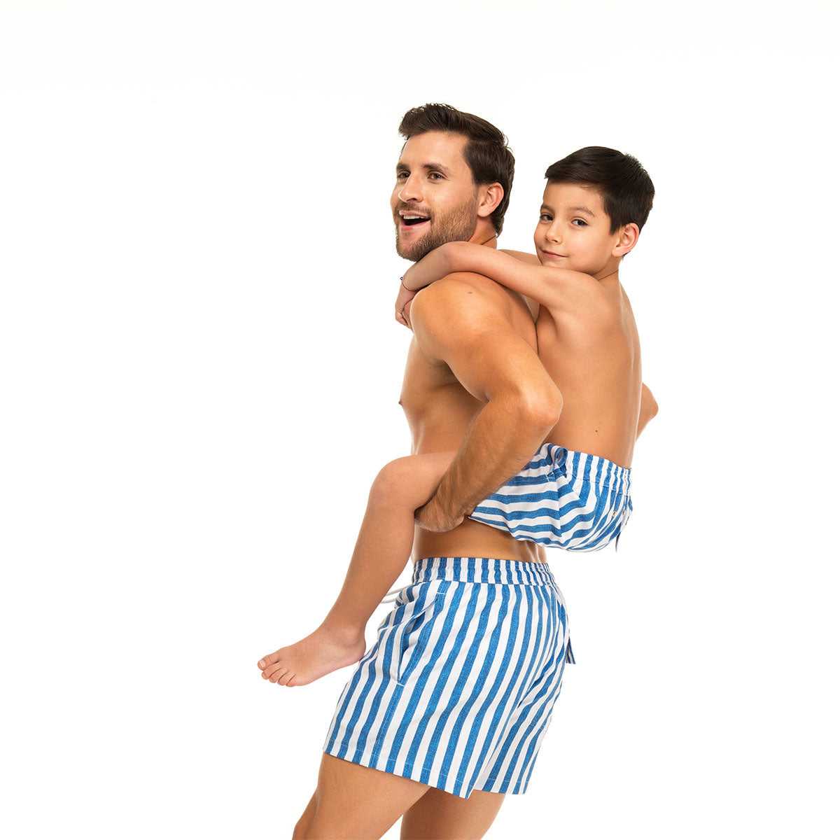 Explore the Balneare matching swim shorts for dad and son from Tolu Australia, crafted to capture unforgettable memories and shared adventures to last a lifetime; these swim shorts are inspired by the tranquil waters of the Mediterranean and mirrors the azure hues of the sea, perfect for beach days together and a symbol of family bonding.