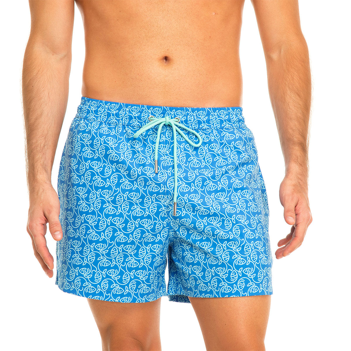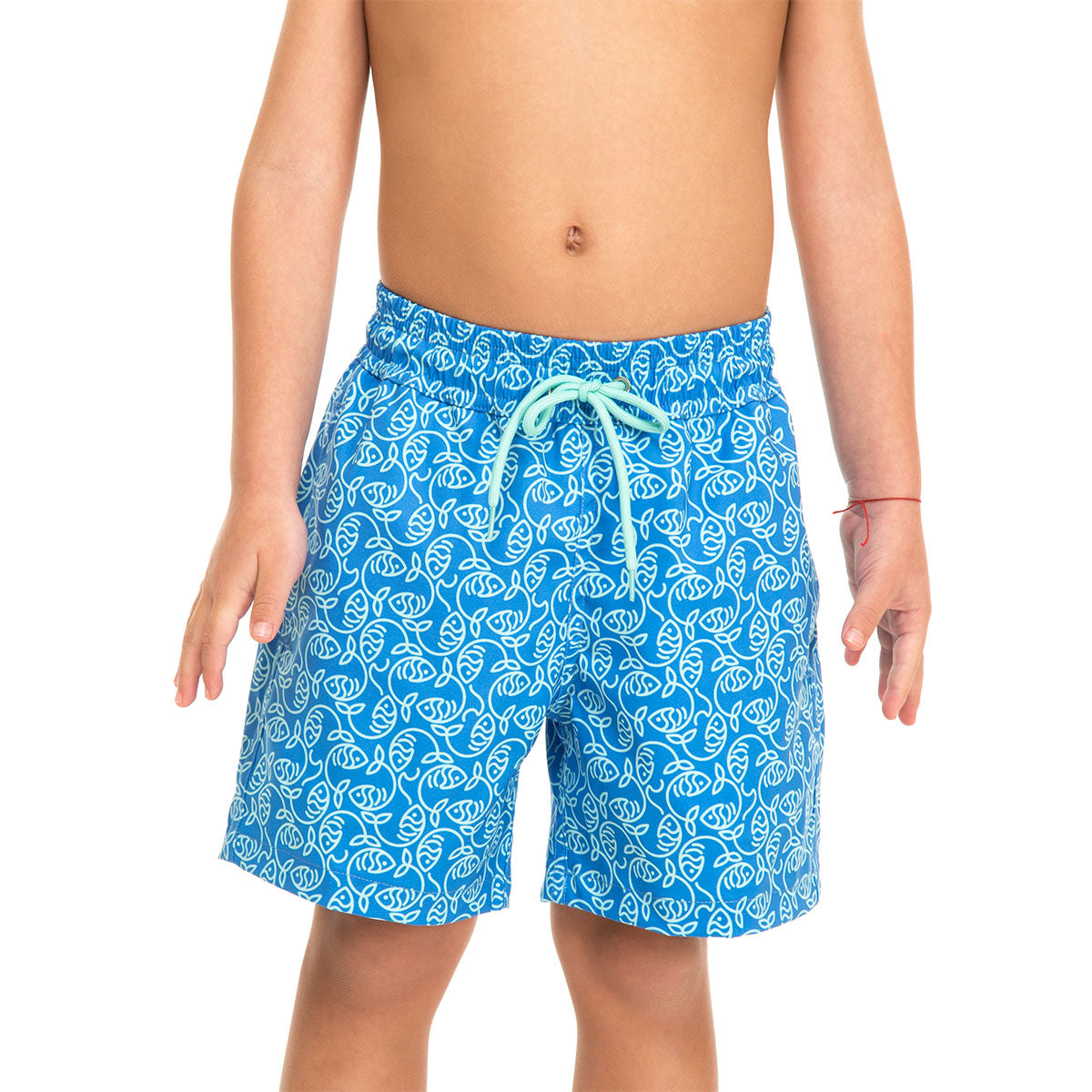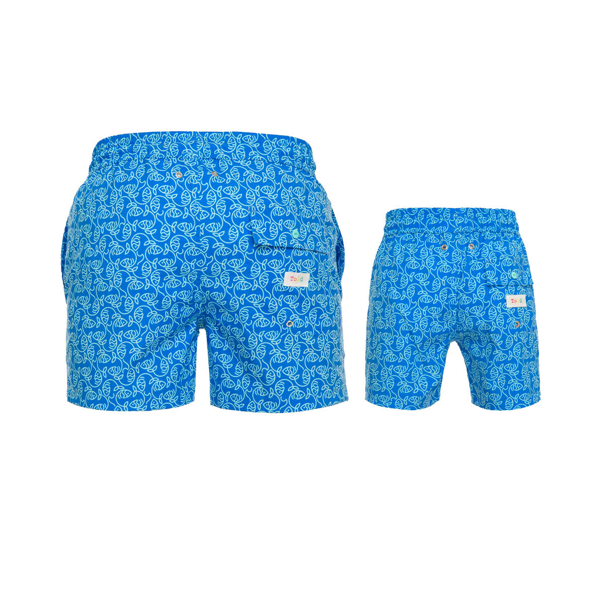 Enjoy the ultimate blend of style, comfort, and sustainability with Tolu Australia's Blue Essential Fishes matching swim Shorts for dad and son. Perfect for those who appreciate eco-friendly fashion and high-performance swimwear.