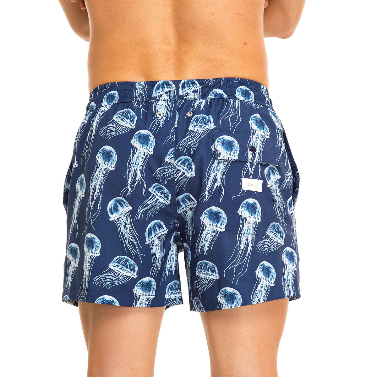 Enjoy the ultimate blend of style, comfort, and sustainability with Tolu Australia's Blue Jellyfish Men's Swim Shorts. Perfect for those who appreciate eco-friendly fashion and high-performance swimwear.