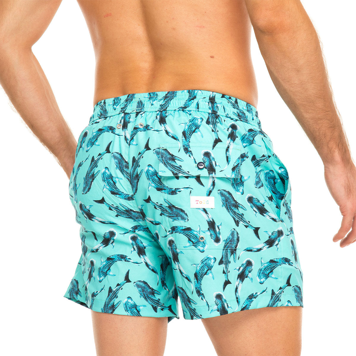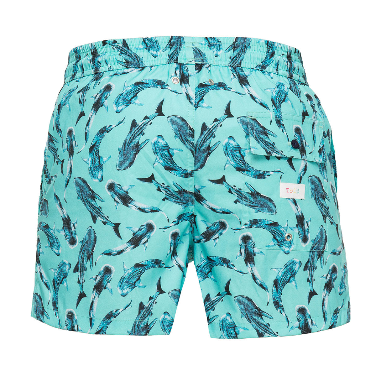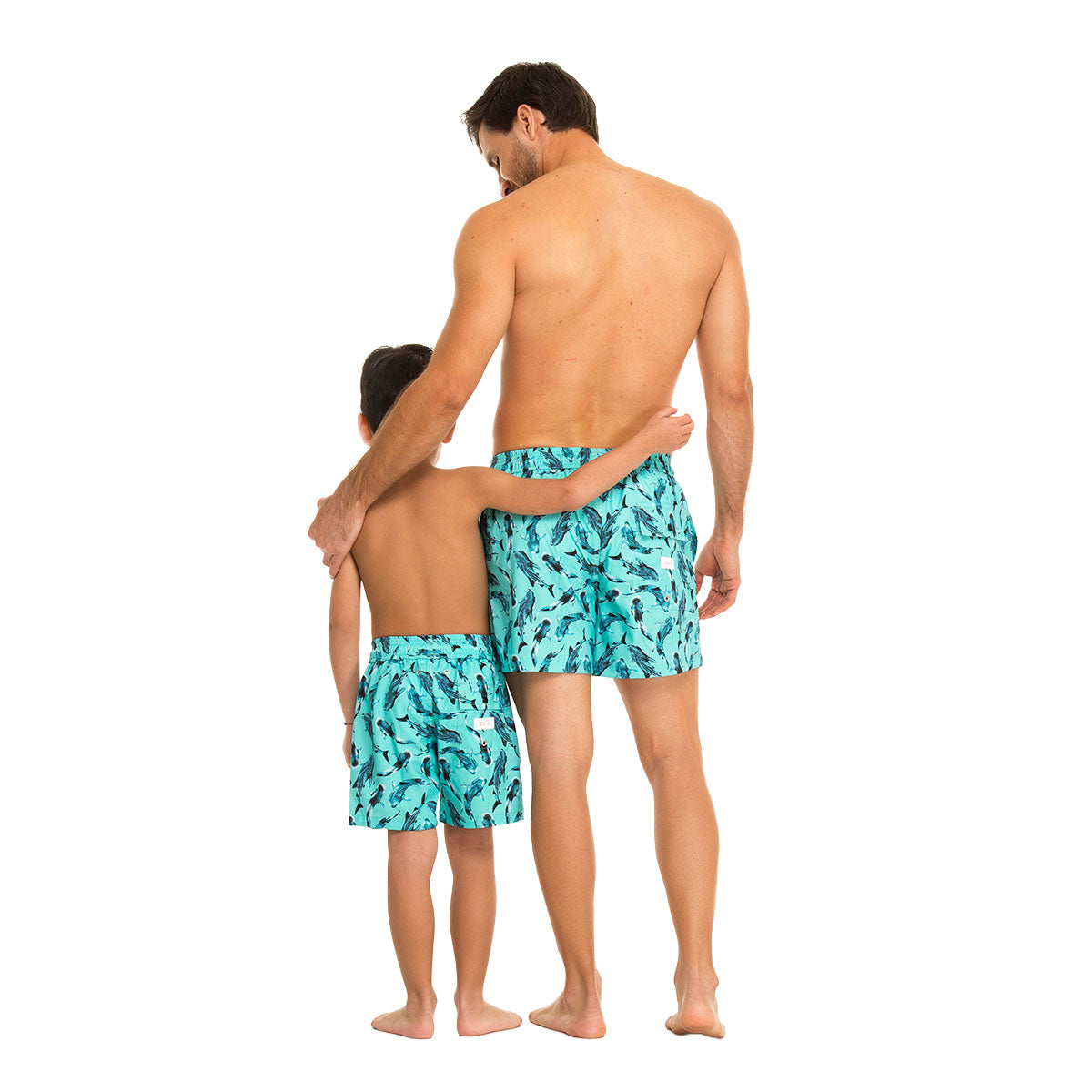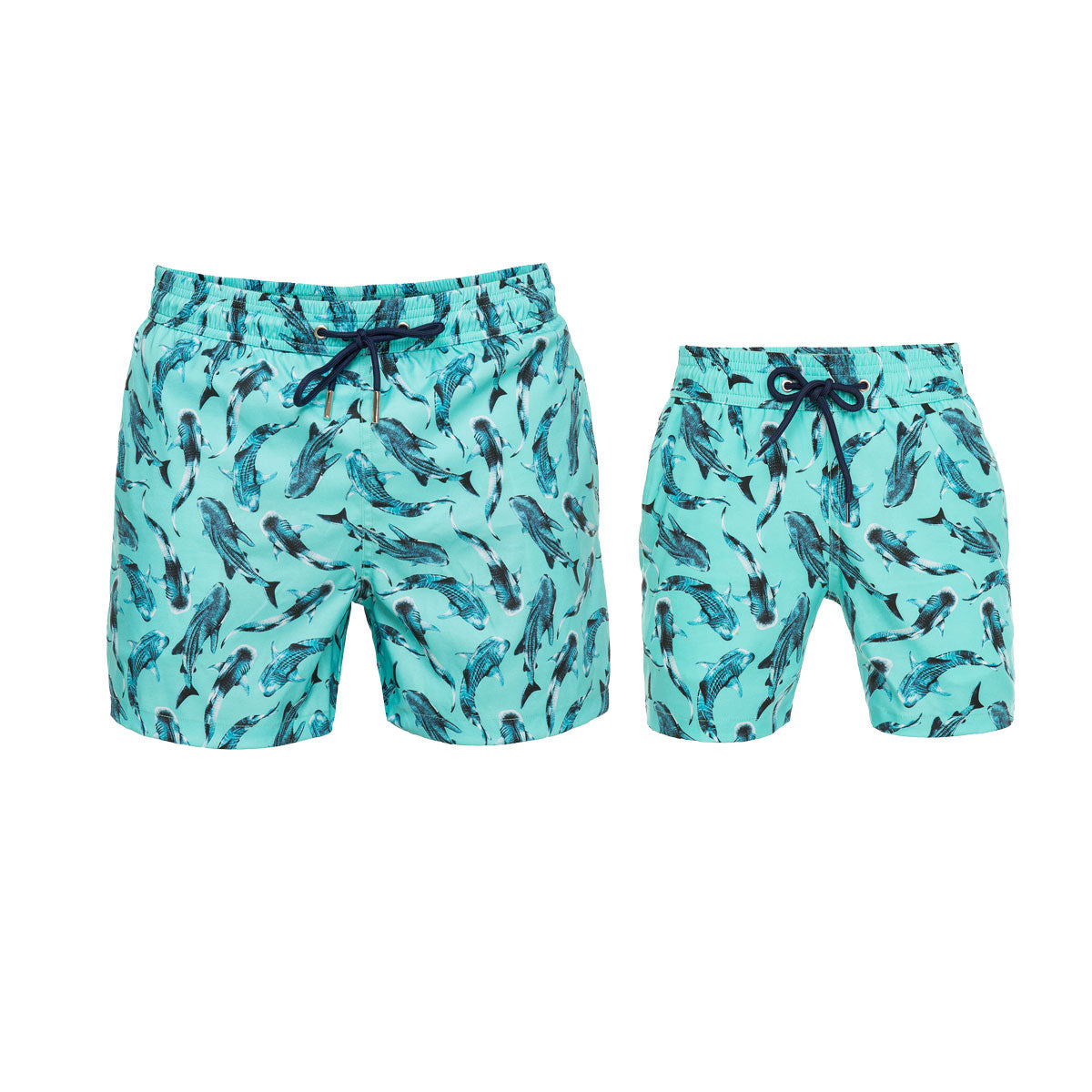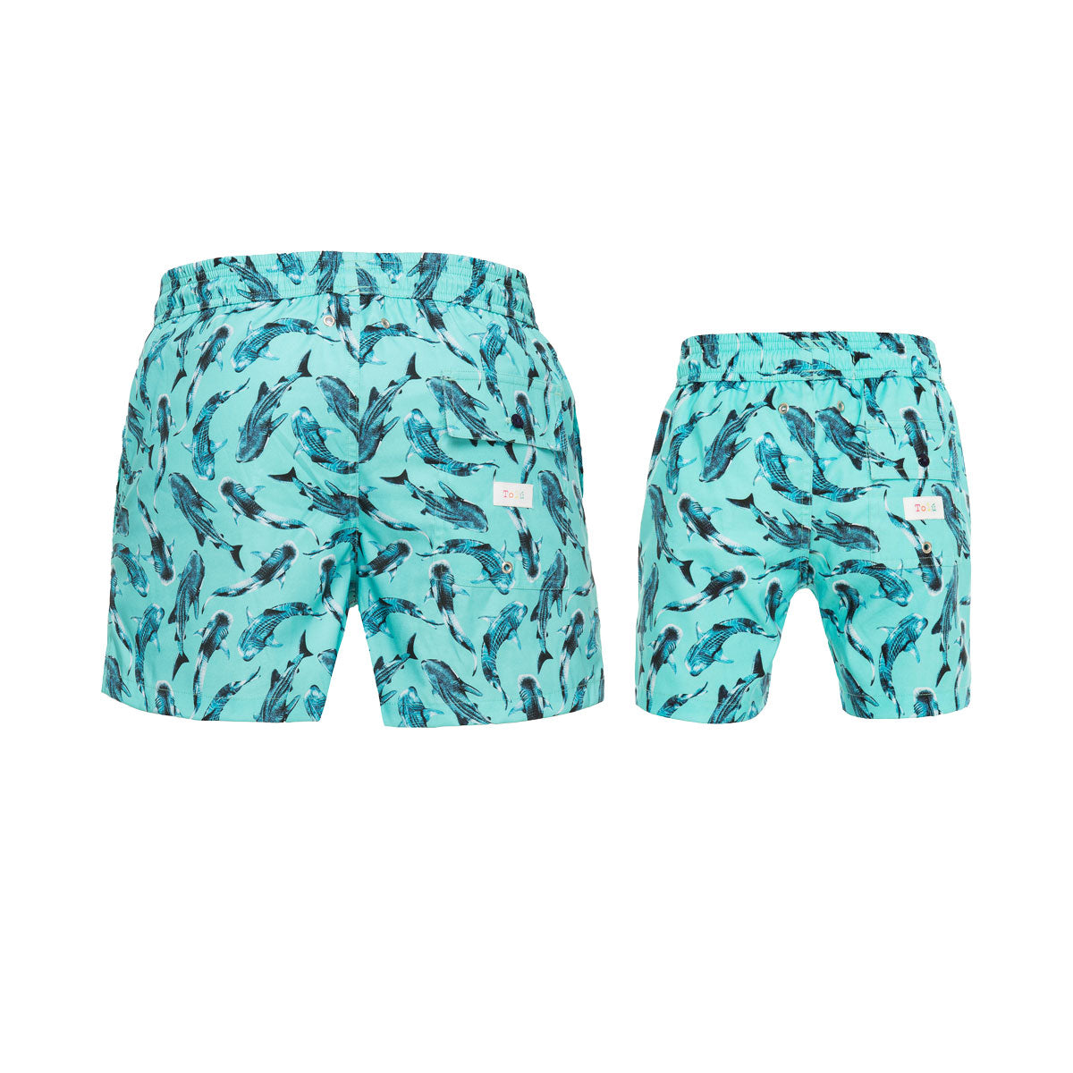 Enjoy the ultimate blend of style, comfort, and sustainability with Tolu Australia's Blue Whale Sharks matching swim Shorts for dad and son. Perfect for those who appreciate eco-friendly fashion and high-performance swimwear.