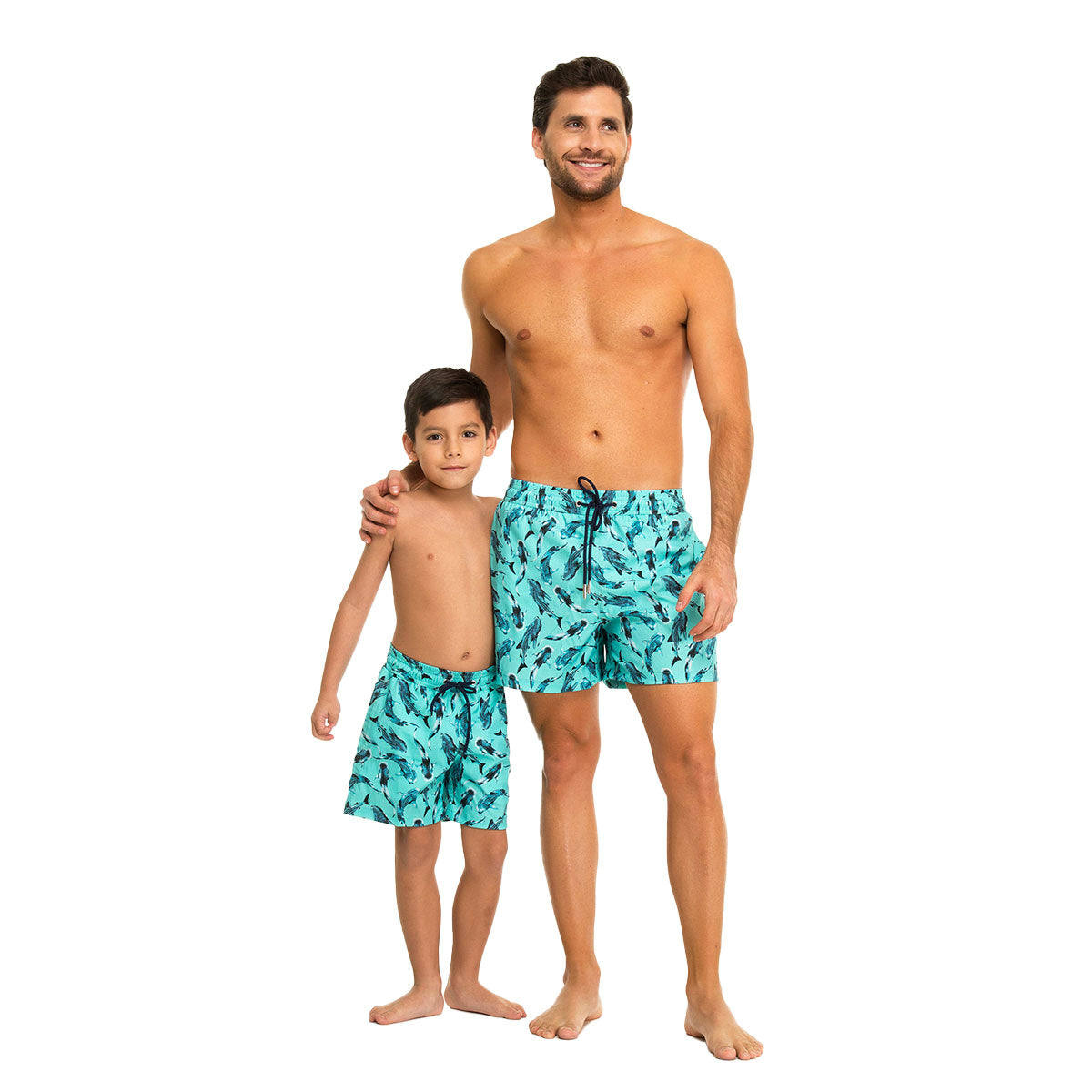 Drawing inspiration from the majestic whale sharks of the ocean, Tolu Australia proudly presents the Blue Whale Sharks matching swim shorts for fathers and sons. These shorts encapsulate the essence of underwater grace and the beauty of marine life. Crafted to foster unforgettable memories, where each wave recounts their adventures and every ripple echoes their shared journey. Perfect for beach days, these matching swim shorts embody a deep symbol of family unity.