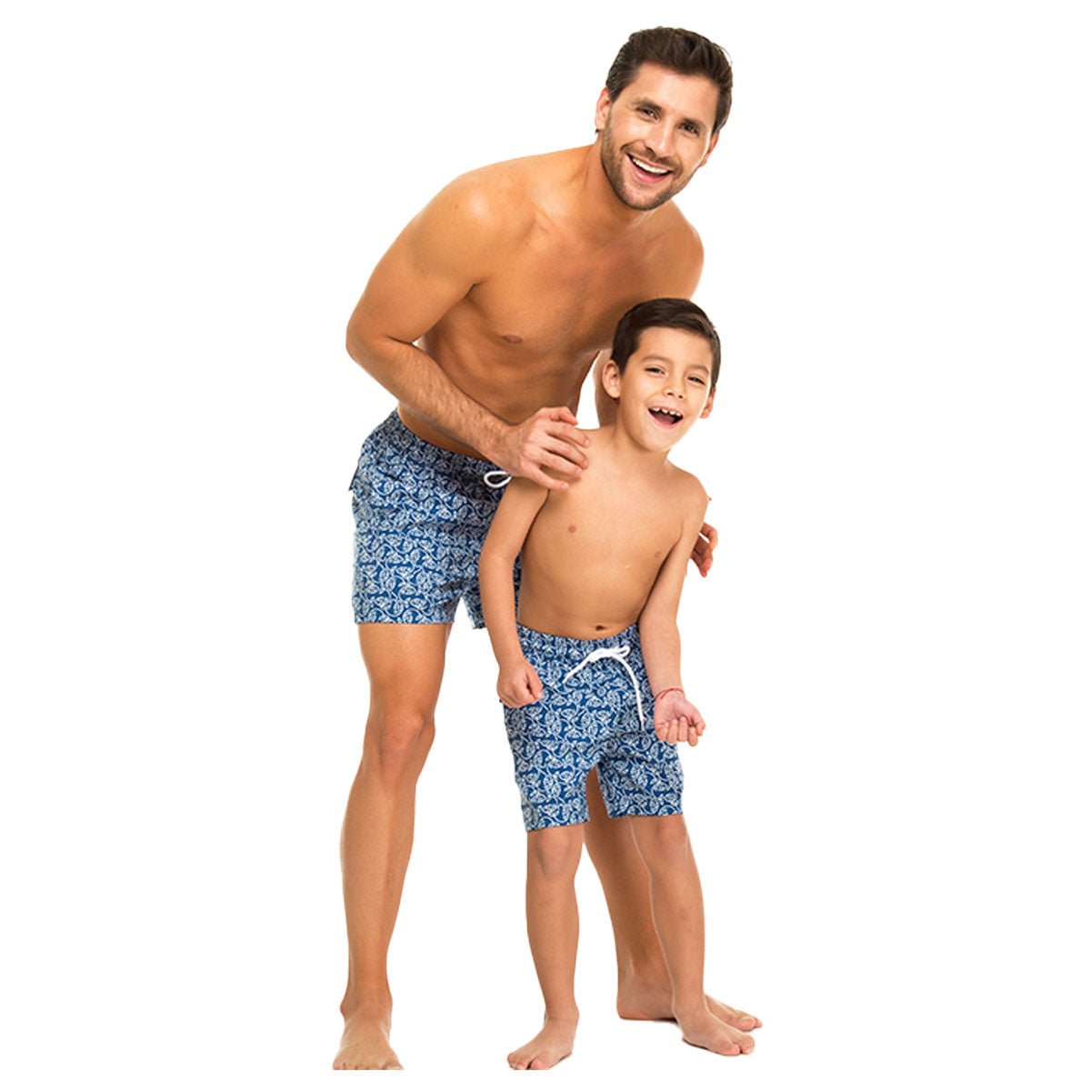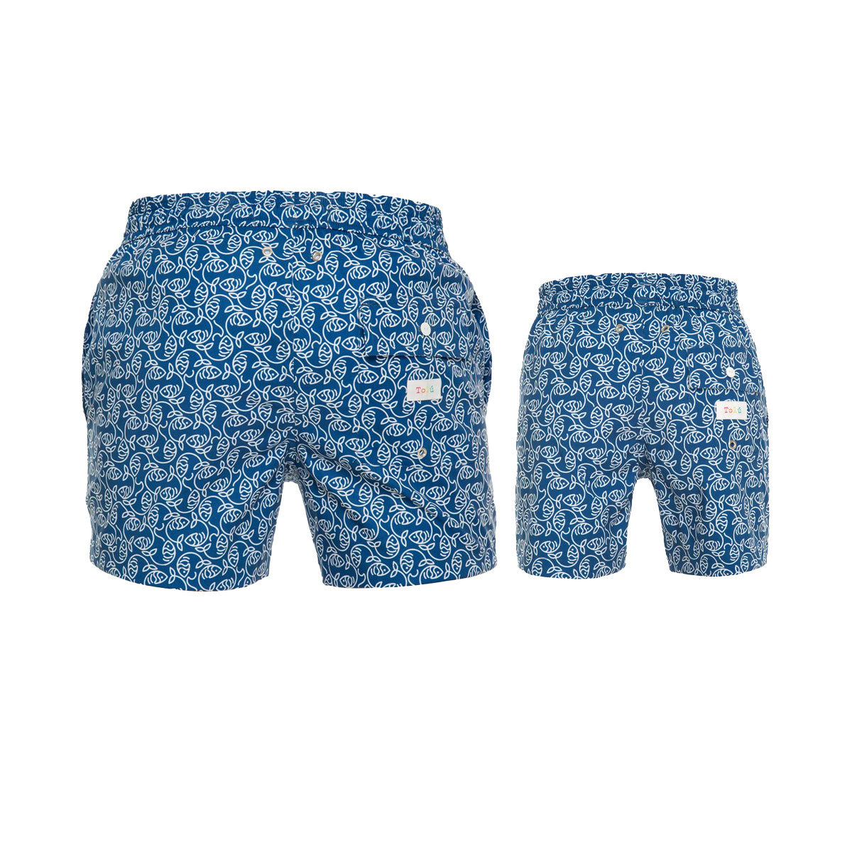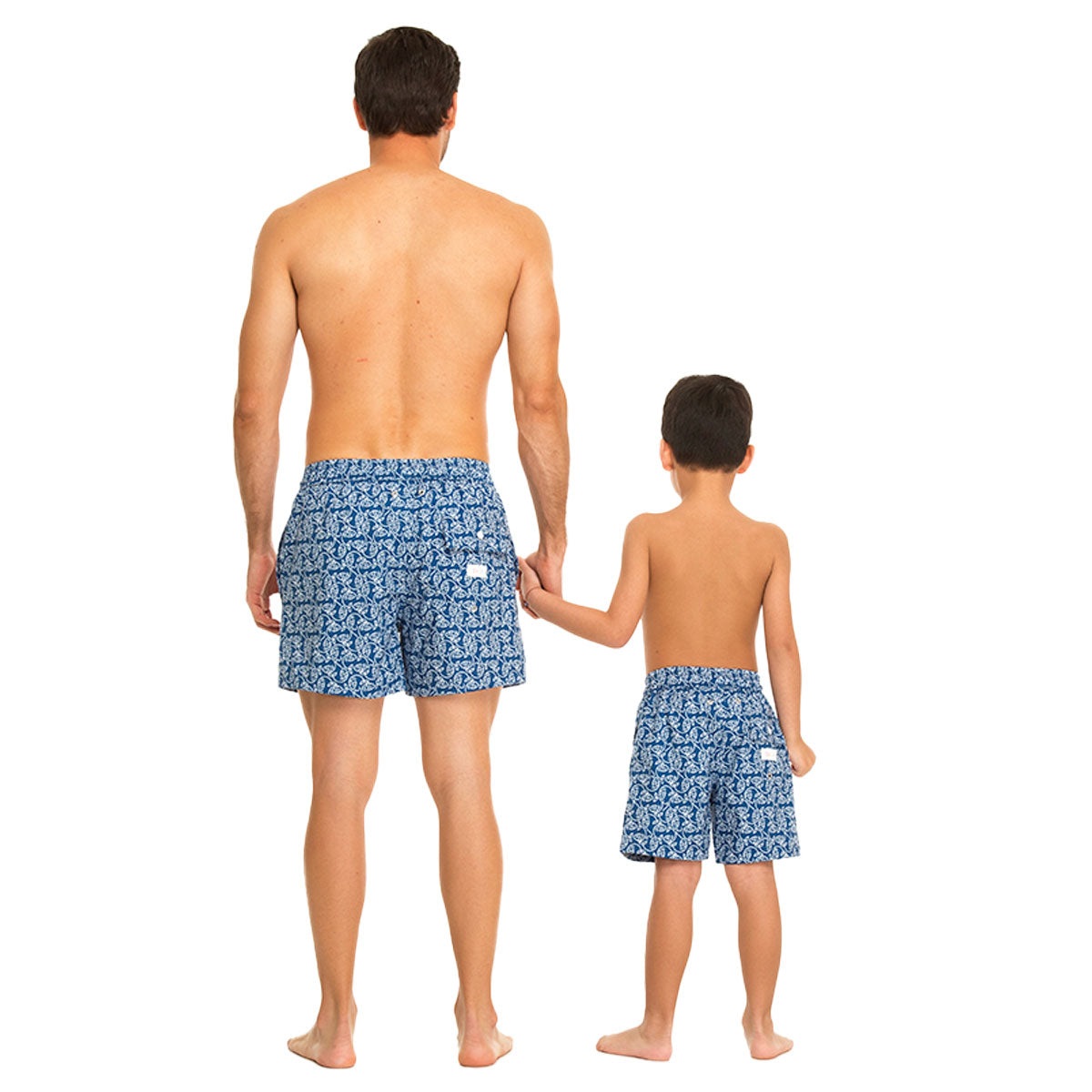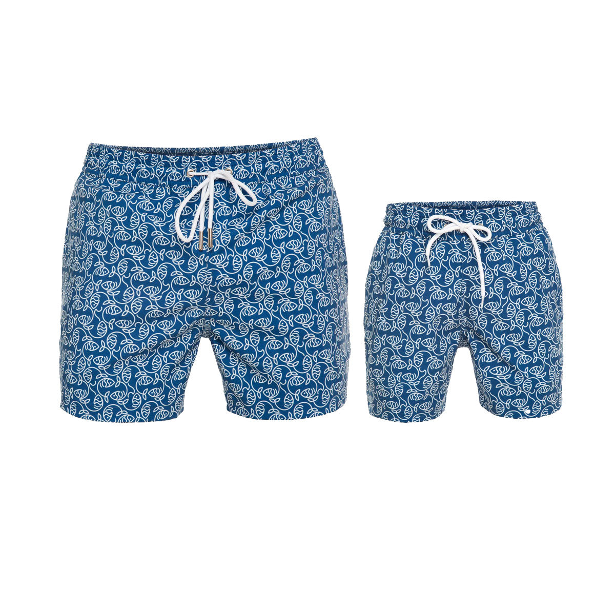 Embark on a journey with the Dark Essential Fishes matching swim shorts for fathers and sons from Tolu Australia, where each wave tells a tale of their adventures and every ripple narrates their shared journey. The subtle fish motif captures the tranquil underwater world and vibrant summer colours. Ideal for beach days, these matching swim shorts are a heartfelt symbol of family unity.