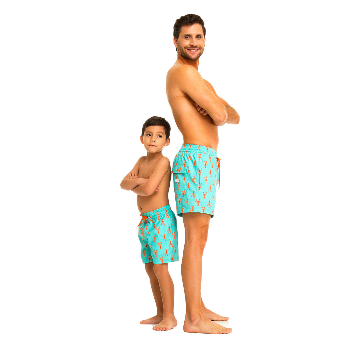 Enjoy the ultimate blend of style, comfort, and sustainability with Tolu Australia's Green Lobsters matching swim Shorts for dad and son. Perfect for those who appreciate eco-friendly fashion and high-performance swimwear