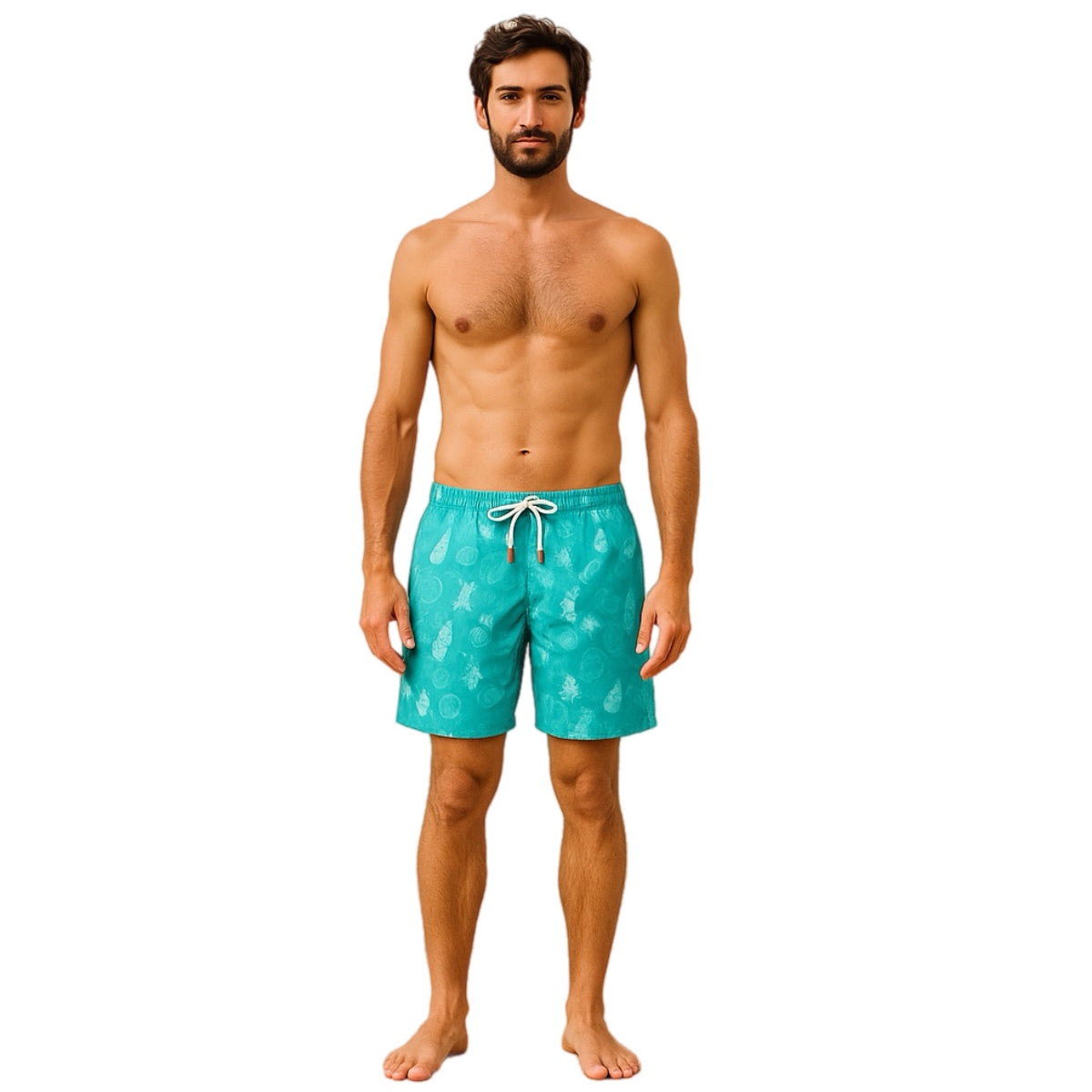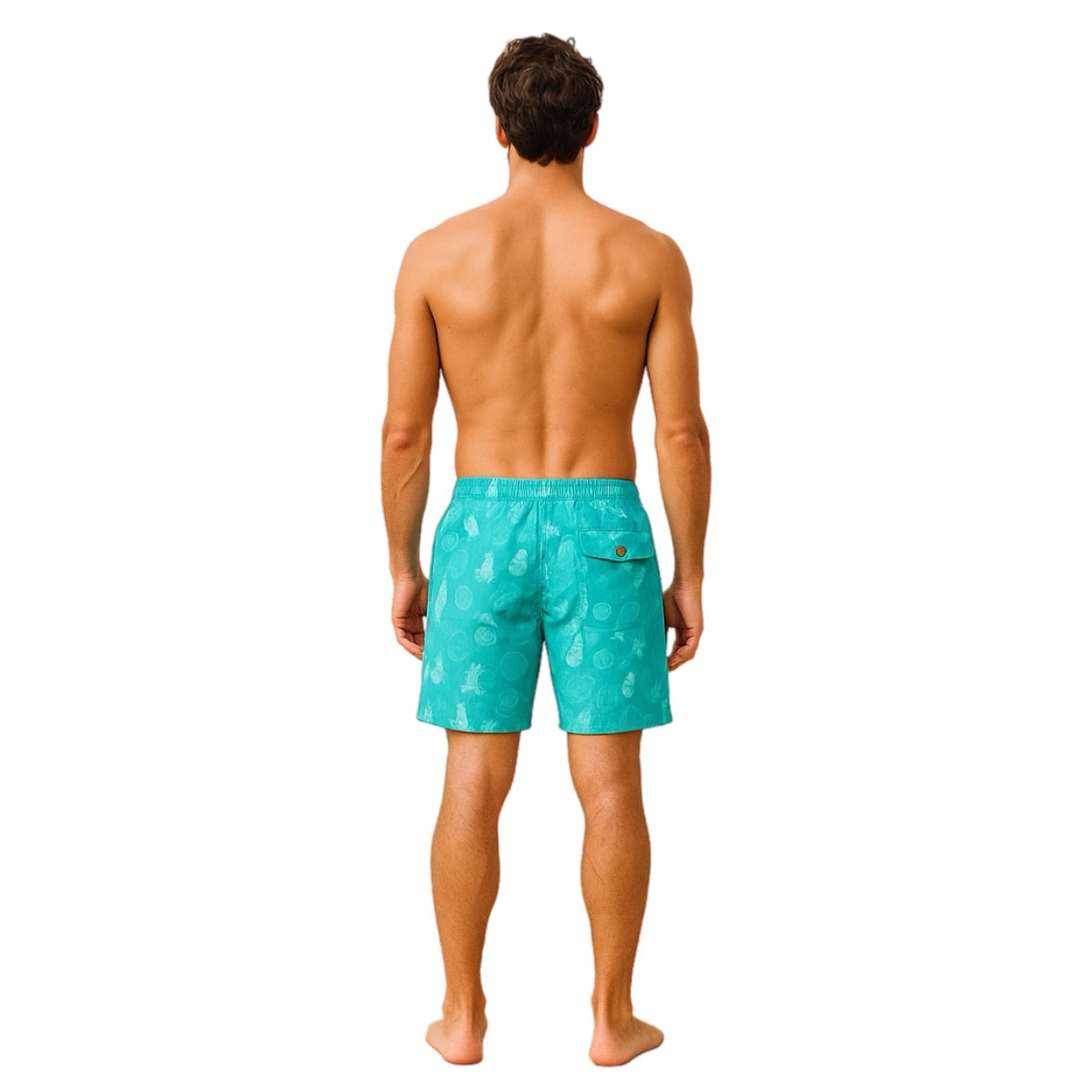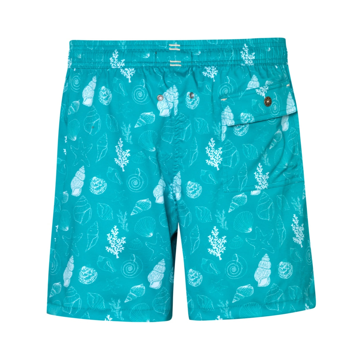 Mens' Turquoise Swim Shorts with Shells and Corals