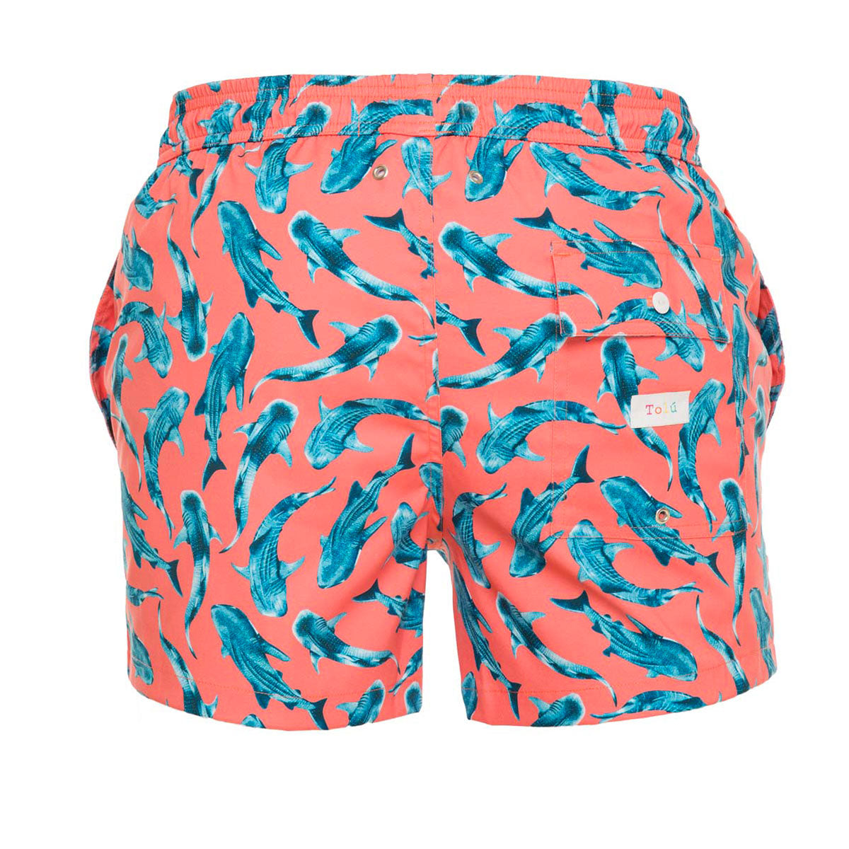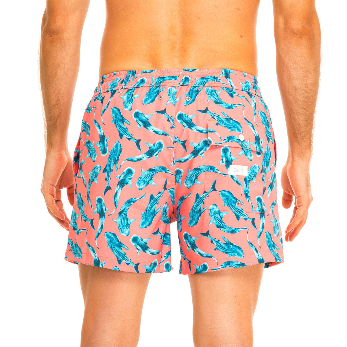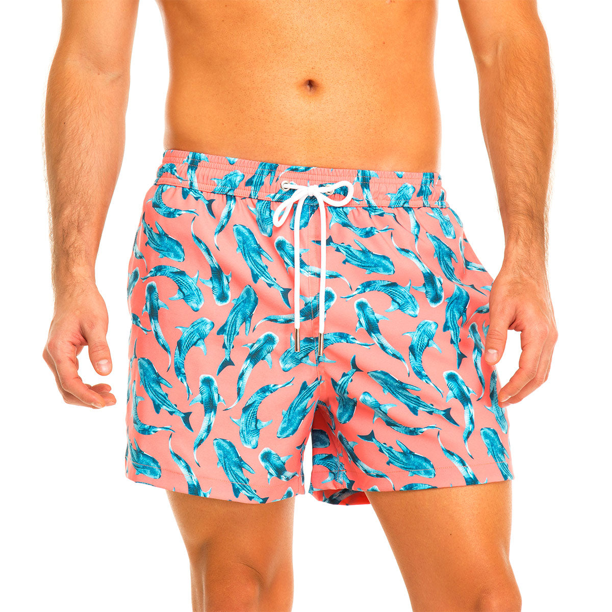 Men's swimwear, Orange Whales Sharks crab patterns, Recycled polyester swim shorts, Quick-drying fabric, UV protection swimwear, Colombian made swimwear, Beachwear for men, poolside fashion, Elasticised waistband swim shorts, Sustainable swimwear, Eco-friendly swim shorts, Chlorine-resistant swimwear, Designer men's swim trunks, Exclusive digital print swim shorts, Fashionable beach attire, Summer vacation essentials, High-performance swimwear, Stylish swim shorts, Beach fashion for men, Trendy poolside looks