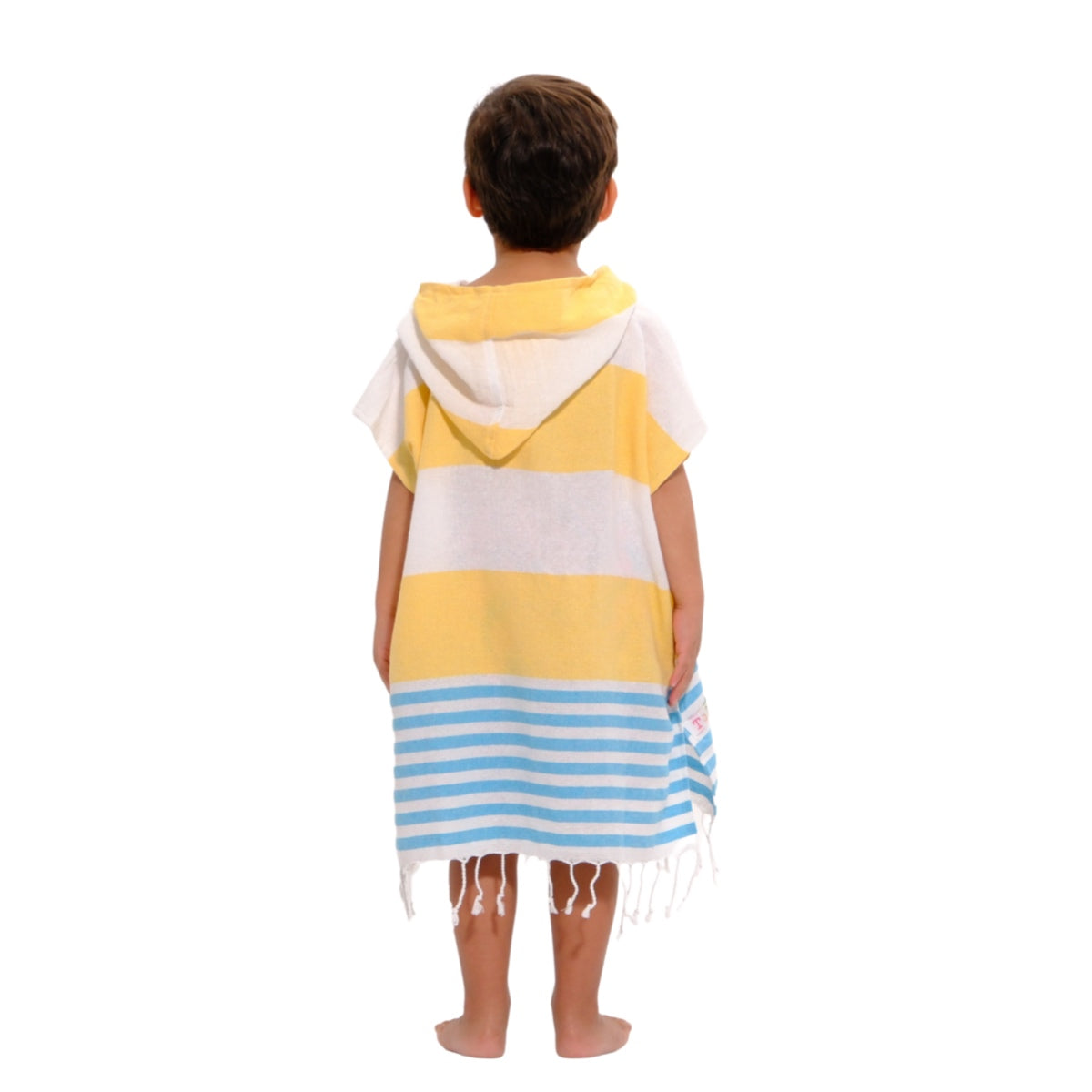Yellow and Blue Kids Hooded Poncho Beach Towel